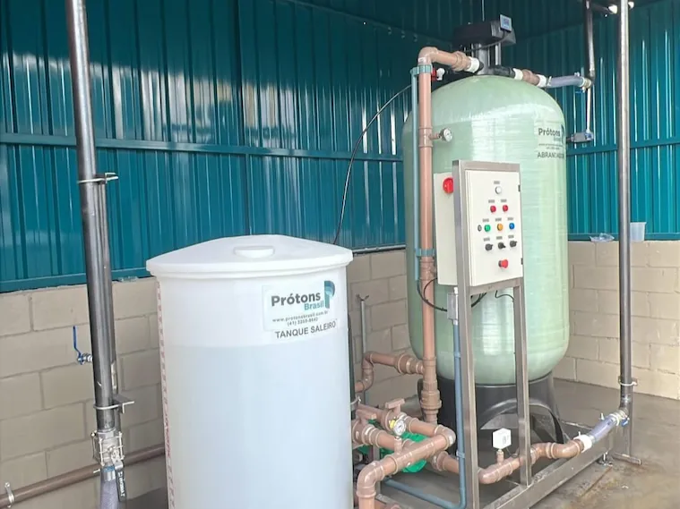 O abrandador de água da Prótons Brasil é um equipamento projetado para remover a dureza da água, eliminando íons de cálcio e magnésio através de um sistema de troca iônica. Ideal para proteger sistemas hidráulicos, caldeiras, torres de resfriamento e processos industriais sensíveis, o abrandador assegura maior vida útil dos equipamentos e melhora a eficiência operacional.